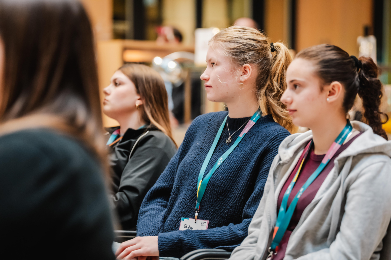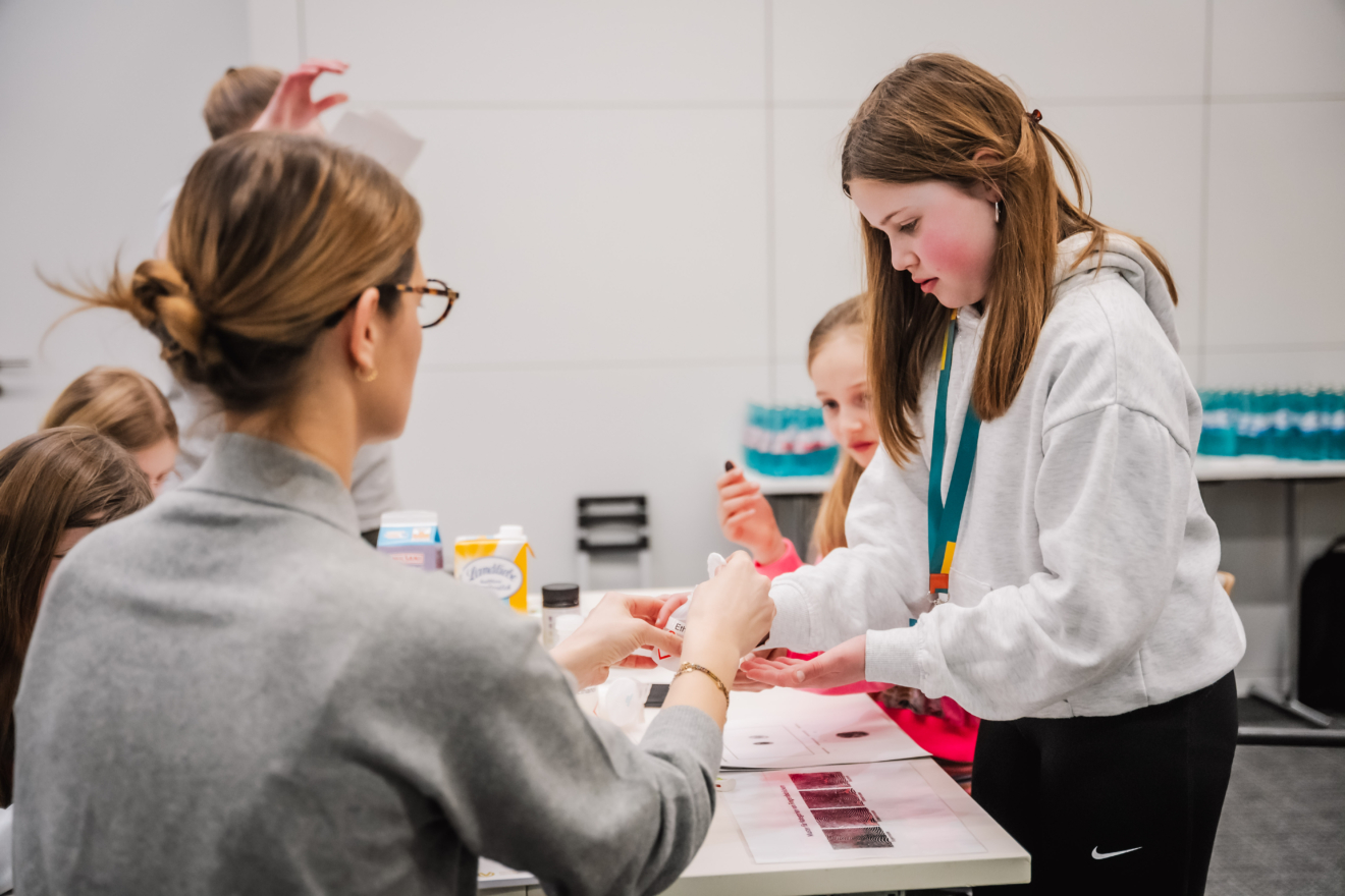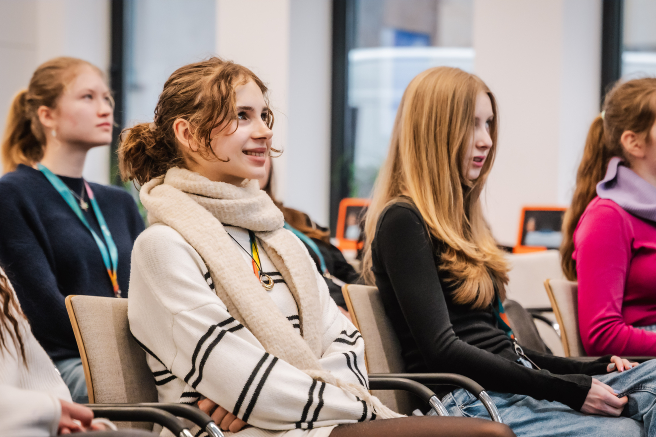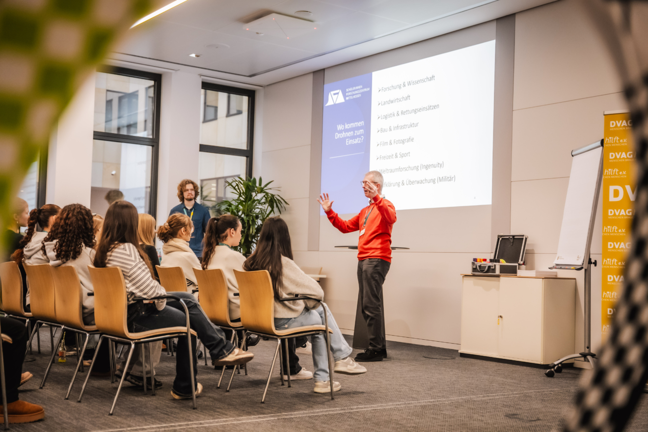 Zum offiziellen Start der neuen Projektrunde kamen die teilnehmenden Schülerinnen und ihre Lehrkräfte in der Frankfurter DVAG-Zentrale zusammen. Das Programm hielt von Workshops über Impulsvorträge einiges bereit. Besonders praxisnah wurde es in den zwei Mitmachangeboten: In „Ich, die unbekannte Lebensform“, einem biomedizinischen Workshop des Chemikum Marburg, erhielten die Schülerinnen spannende Einblicke in medizinische und naturwissenschaftliche Arbeitsweisen und konnten selbst experimentieren. Zudem bot das Schüler:innenforschungszentrum (SFZ) Mittelhessen einen Drohnen-Workshop an, bei dem die Teilnehmerinnen Technik, Steuerung und Einsatzmöglichkeiten moderner Drohnensysteme kennenlernten. Ein Highlight war die Präsentation der Projektideen, u.a. zu nachhaltigen Alternativen zu Kunststoff aus Algen,